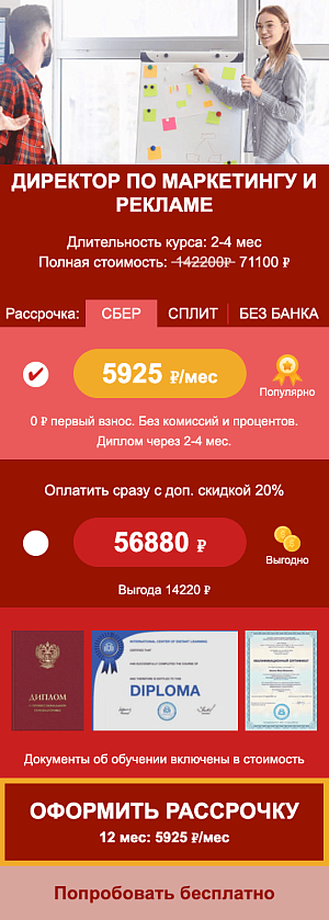 Если у вас есть карта Сбербанка, вы можете оформить рассрочку в Личном кабинете и приступить к занятиям без ожидания. Первый платеж — только через месяц, без процентов и скрытых комиссий!